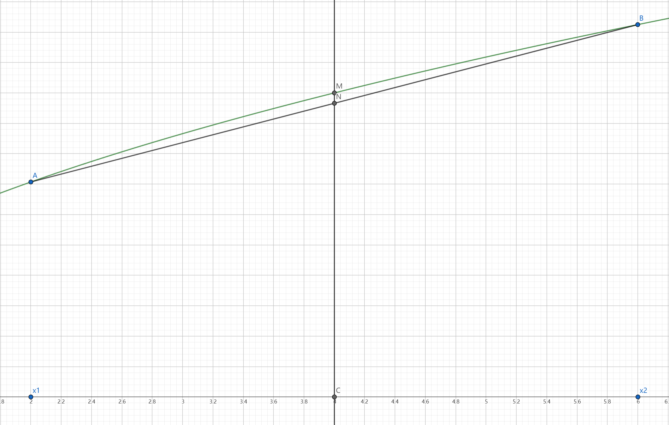 点 $M$ 在 点 $N$ 的上方,可以证明 $\frac{f(x_1)+f(x_2)}{2} <f(\frac{x_1+x_2}{2} )$
